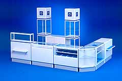 Produkujemy meble sklepowe, gabloty ekspozycyjne, witryny ekspozycyjne, których konstrukcją są formatki szklane połączone małymi łącznikami aluminiowymi lub stalowymi. Brak profili narożnych pozwala na maksymalne wyeksponowanie towaru.